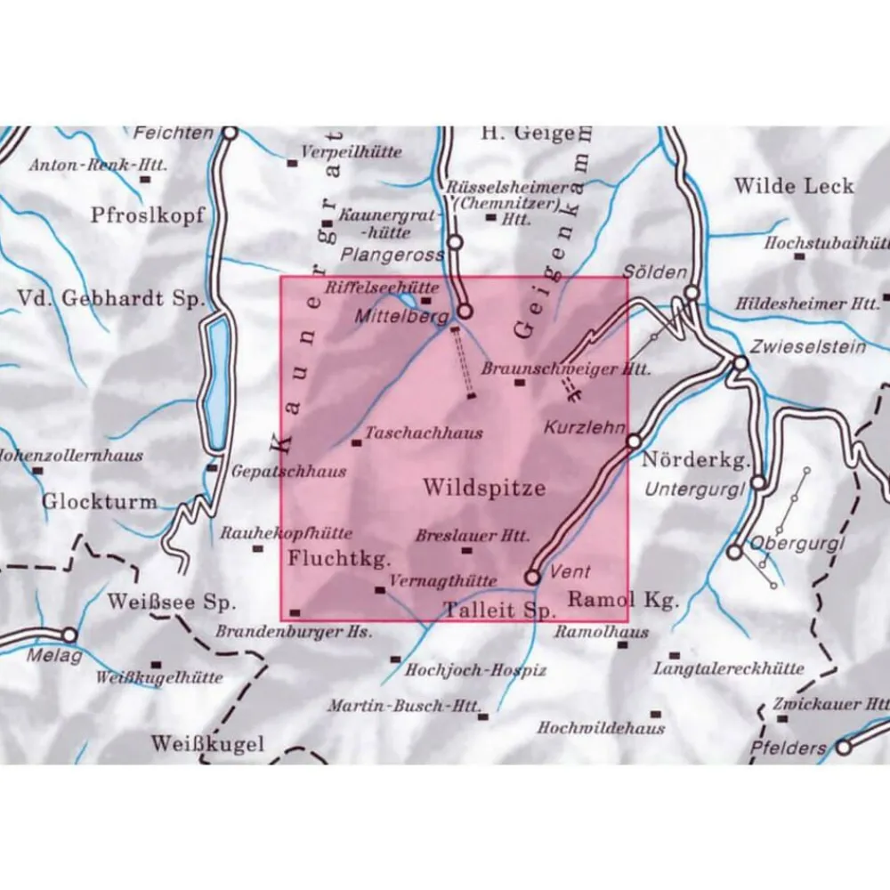Plaatsen en bergtoppen op de kaart: Wildspitze, Mittelberg, Kurzlehn, Talleit.