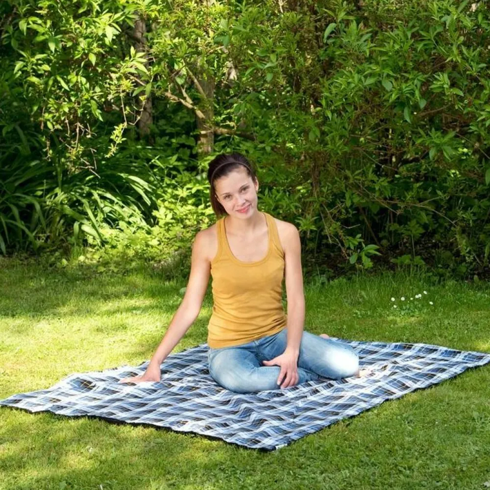 Dit ultralichte picknickkleed is altijd handig voor onderweg. Het ligoppervlak is van superzacht en comfortabel katoen en de onderzijde is van waterdicht PVC.