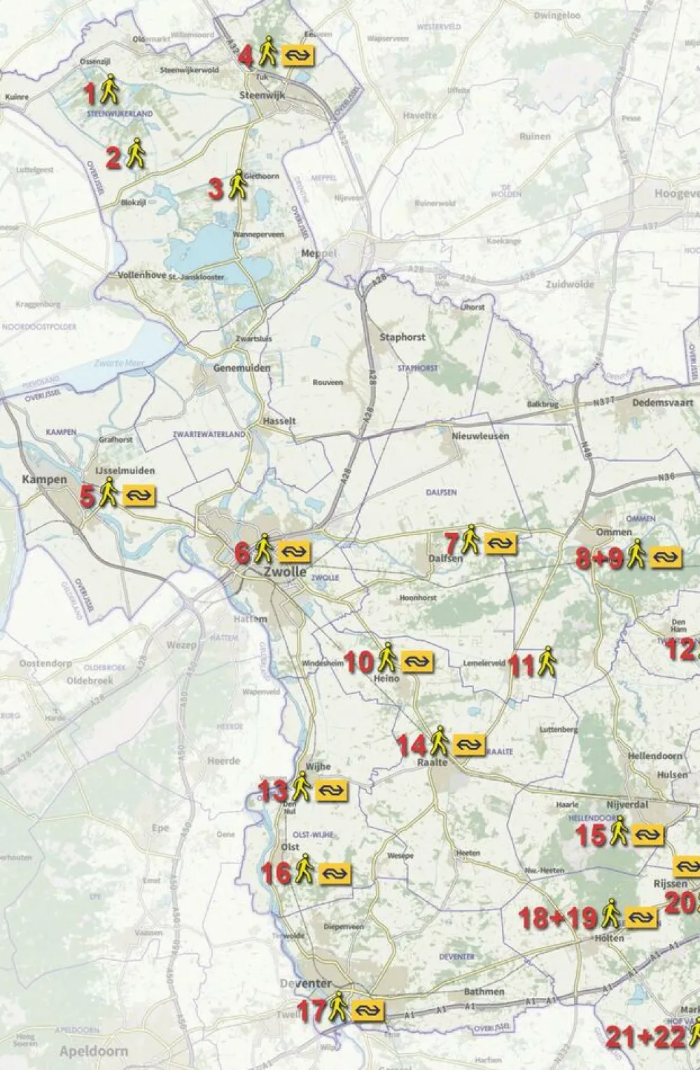 De Provincie Wandelgids nummer 10 Overijssel West bevat 22 wandelroutes geschreven door Bart van der Schagt, ook wel bekend als WandelBart van de NS wandelingen. De routes in dit boekje zijn zeer divers: in de kop van Overijssel routes door Nationaal Park Weerribben-Wieden, met uiteraard een leuke route door en in de omgeving van Giethoorn, een prachtige ‘bergwandeling’ bij Steenwijk, een paar routes langs de IJssel en in het Vechtdal, en daar waar de Sallandse heuvels beginnen routes door bossen, over heidevelden en heuvels. In deze gids staan ook twee leuke, groene stadswandelingen door Zwolle en Deventer.