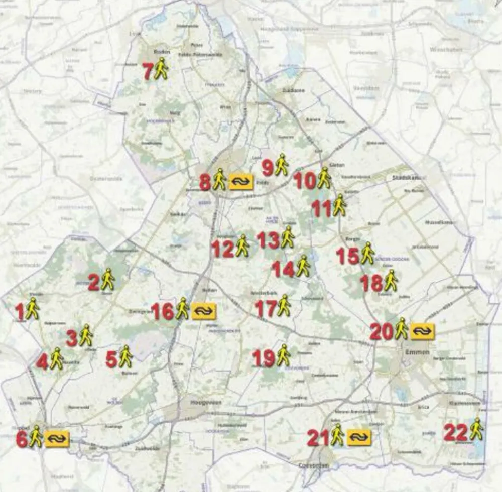 De Provinciewandelgids nummer 12 Drenthe bevat 22 leuke wandelroutes verspreid over de gehele provincie Drenthe. De wandelingen in buitengebied en natuur variëren van kort tot lang en zijn goed bereikbaar met het openbaar vervoer.