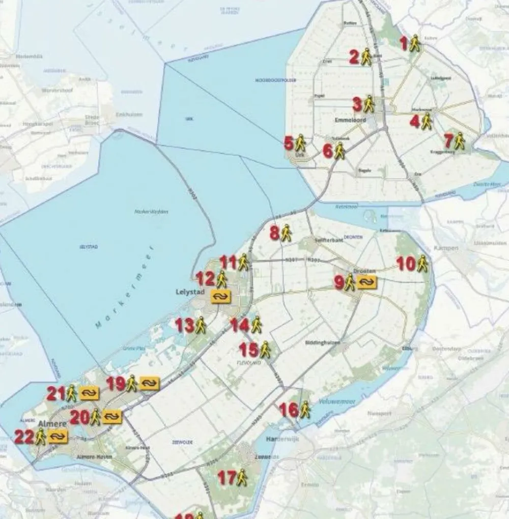De Provincie Wandelgids Flevoland bevat 22 leuke wandelroutes verspreid over de gehele provincie. De wandelingenin stad, buitengebied en natuur varieren van kort tot lang en zijn goed bereikbaar met openbaar vervoer.