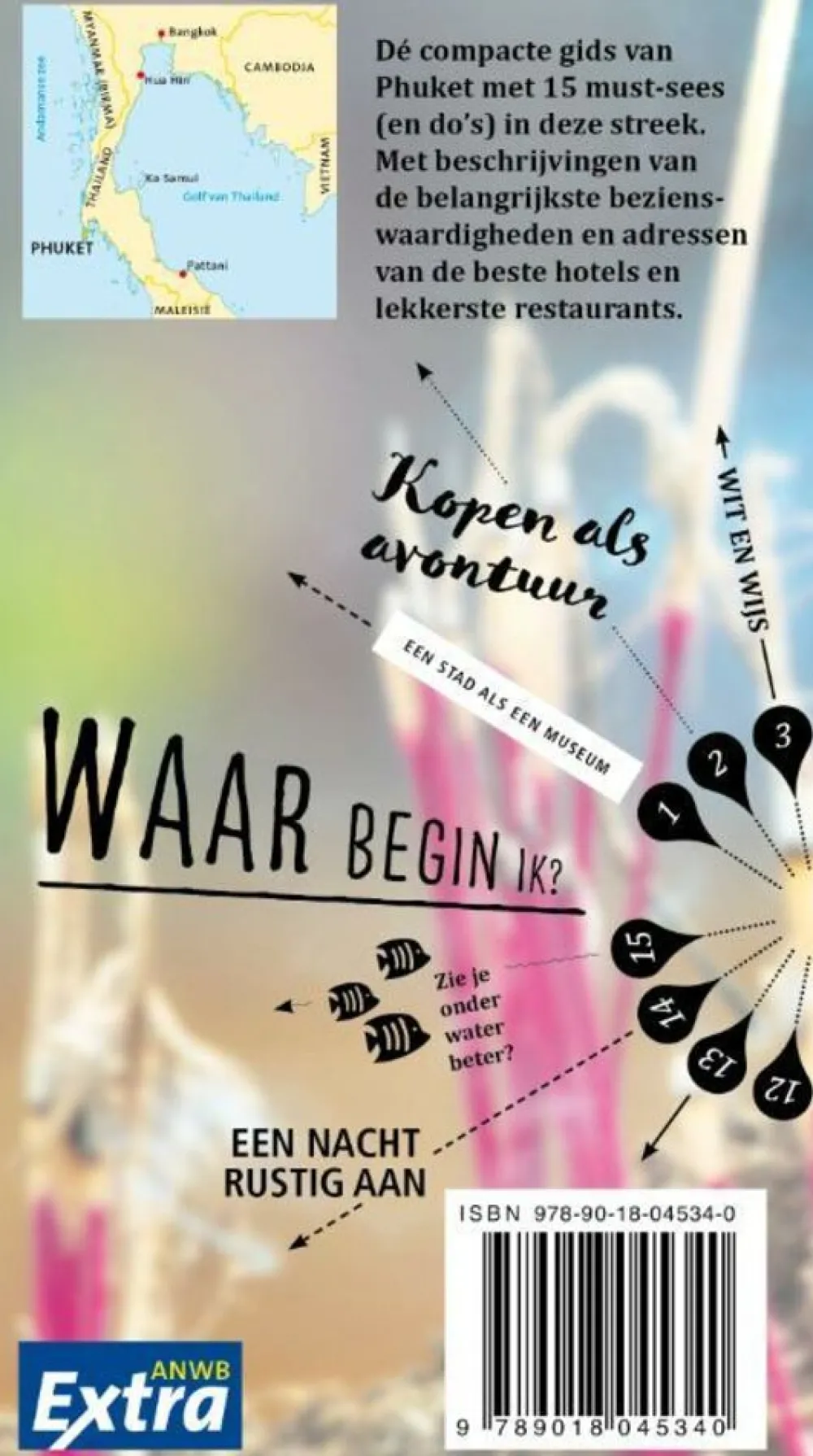 Beleef Phuket met de compleet vernieuwde reisgids ANWB Extra Phuket! Het heerlijke klimaat, de indrukwekkende cultuur, de vrolijke chaos in de stad. Maar ook de rust aan de stranden en natuurlijk de vriendelijke, goedlachse inwoners van het land. Van backpacker tot luxedier, iedereen vindt in Thailand zijn droombestemming. De ANWB Extra reisgids Phuket biedt naast veel praktische tips over vakantiehuizen, hotels en vervoer ook 15 inspirerende bezienswaardigheden die je niet mag missen. Ga kajakken door de Phang Nga Bay, slenter over de Naka Weekend Market of wandel door de wildernis van nationaal park Khao Phra Thaeo. Deze kleine reisgids past gemakkelijk in de tas en heeft een handige uitneembare kaart met daarop de beste tips voor overnachten, winkelen, eten en drinken en uitgaan.