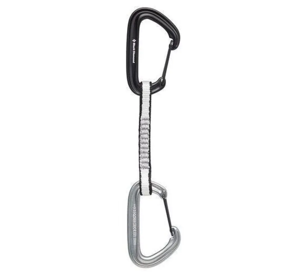 Met 2 lichte wiregate karabiners en een 12 cm dynex dogbone om deze te verbinden is dit een zeer lichtgewicht setje wat nog steeds stevig genoeg is om allerdaags gebruik op rots te weerstaan.