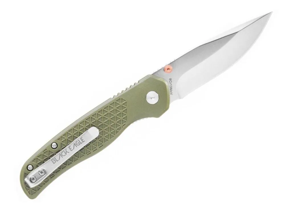 De Black Eagle Picos is een no-nonsense EDC mes met een moderne subtiele styling en prestaties die zijn lofwaardige naam eer aan doen. Vernoemd naar de Picos de Europa regio, letterlijk de toppen van Europa. Deze regio is echter veel meer dan prachtige bergen, de weelderige regio is al eeuwenlang bewoond en biedt een uniek beeld van hoe echt samenleven met de natuur eruit ziet. De Picos is eenvoudig één handig open te klappen door zijn Duimstud, vervolgens houdt de linerlock het mes stevig in geopende stand. Het drop point lemmet is gemaakt van 8Cr13MoV staal. Een staalsoort met uitstekende taaiheid en zeer goede herslijpbaarheid. Verder is deze afgewerkt met een satijnen afwerking, dit geeft de Picos een hoogwaardige uitstraling. Het heft is gemaakt van glasvezel versterkte nylon (FRN) schalen met geïntegreerde roestvrijstalen liners. Dit heft maakt het mes niet alleen verrassend licht, maar door het meegegoten uitgesproken patroon heeft de Picos een fantastische grip in alle weersomstandigheden. Het mes uitgerust met een deep-carry draagclip.