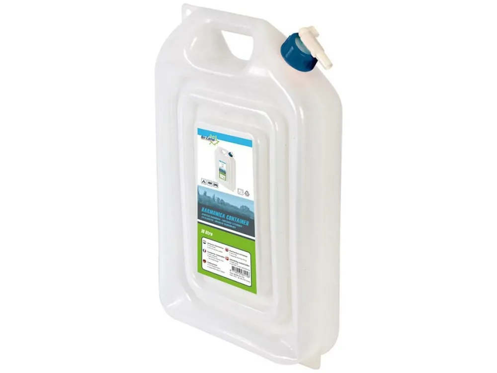 De Bo-Camp jerrycan harmonica met kraan heeft een inhoud van 10 liter en is plat mee te nemen en zet pas uit bij het vullen van de jerrycan. De jerrycan is voorzien van een kraan en een ophangoog.
