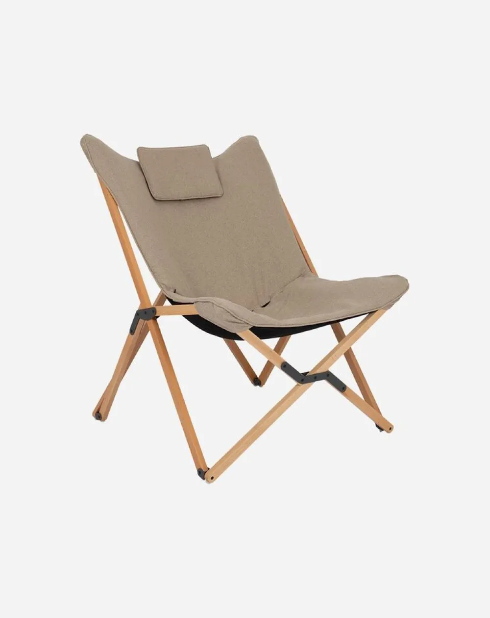 De Wembley M van Bo-Camp is een zeer luxe en comfortabele relaxstoel. Deze stoel is voorzien van een stijlvol, lichtkleurige houten frame en de zitting is gemaakt van de stof Nika. Door de combinatie van de gepolsterde stof, de brede en diepe zit en het hoofdkussen is de stoel zeer comfortabel. De stoel is eenvoudig mee te nemen door het inklapbare frame.