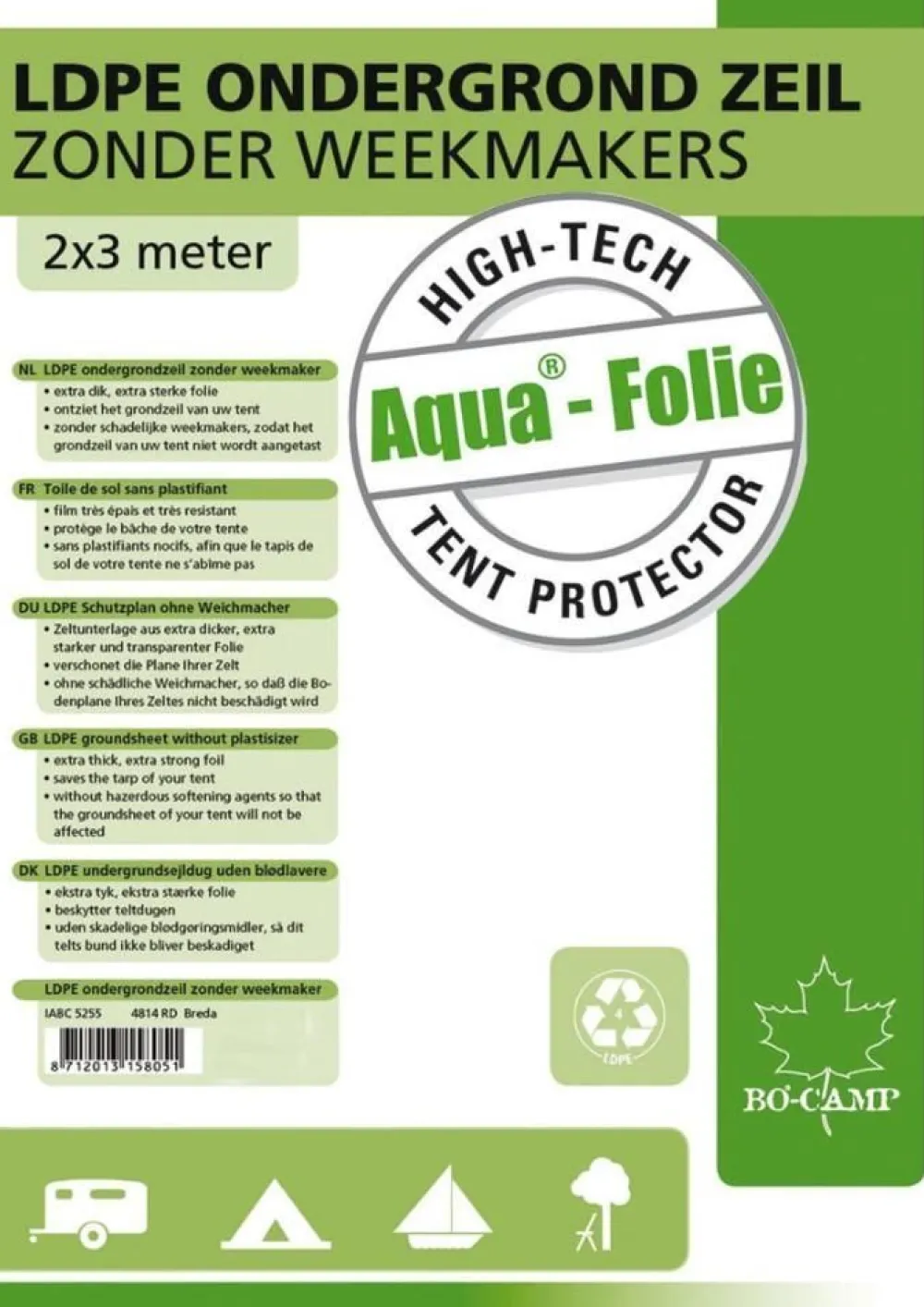 Doorzichtig ondergrondzeil zonder weekmakers. Door de speciale samenstelling tast dit zeil de coating van het tentgrondzeil niet aan. De folie is uit drie lagen opgebouwd en dus bijzonder sterk en meerdere malen te gebruiken. Geschikt voor recycling.