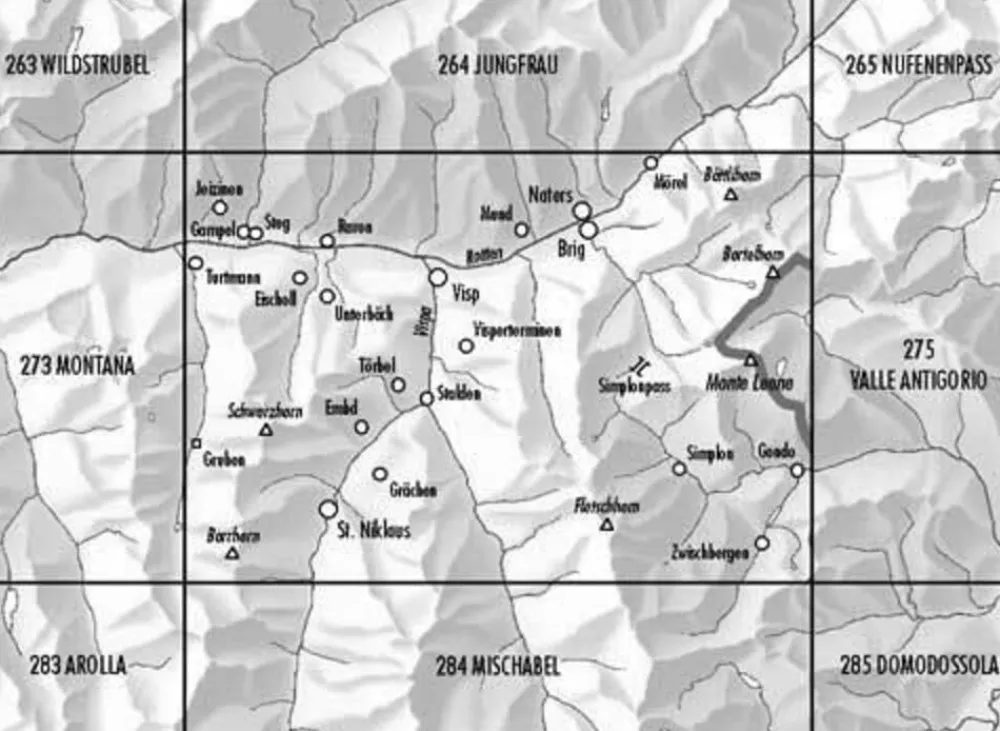 Topografische wintersportkaart 256s Visp met sneeuwschoen-, ski- en snowbaordroutes: betreft regio rondom Turtmann – Fletschhorn – Simplon