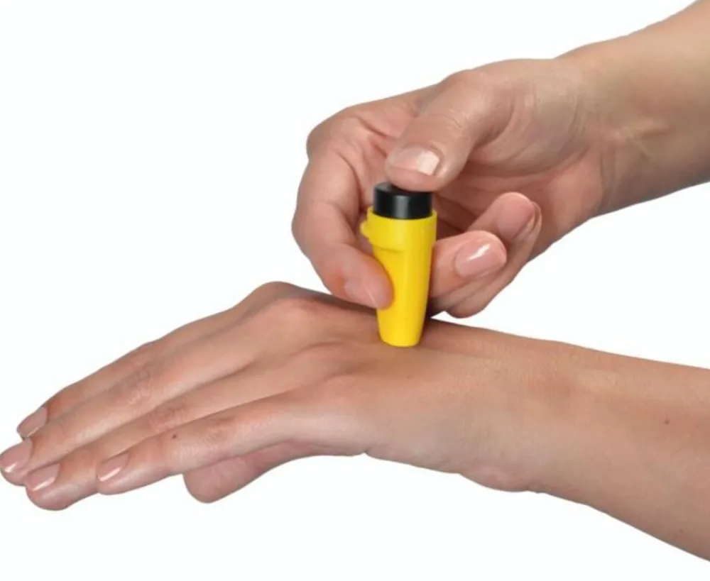 De Care Plus® Click Away Bite Relief is revolutionaire behandelingsmethode voor het behandelen van jeuk van insectenbeten. Een paar keer klikken op de plaats van de beet/steek en de jeuk verdwijnt. Het vermindert de jeuk én de zwelling zonder gebruik te maken van plakkerige cremes en chemicaliën. Het product is klinisch getest, veilig voor kinderen boven de 4 jaar en gaat meer dan 4.000 behandelingen mee.