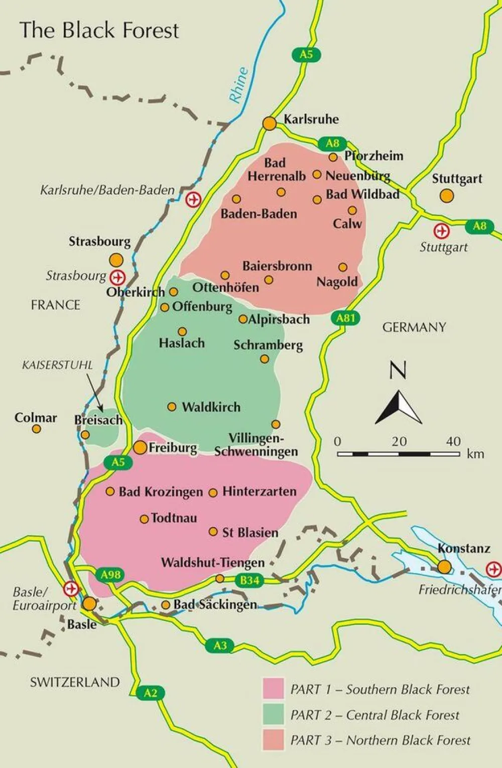 The cycle routes (4 day rides, and the 242km Southern Black Forest Cycle Route) are mostly easy and scenic, and utilise the extensive and well-maintained bicycle trail system that criss-crosses the entire region. The walks and rides are described in detail and basic maps are provided for orientation.