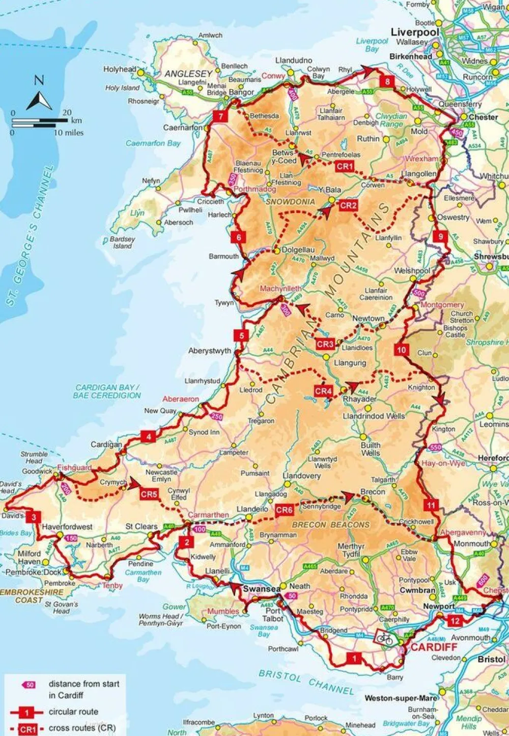 The route can be ridden as a leisure ride or as a challenge and there are schedules for all types of rider. There are long easy-rolling stages along both the South Wales and North Wales coasts, much of which is along traffic-free paths, with harder riding along the rockier west coast and through the low hills of the border counties.