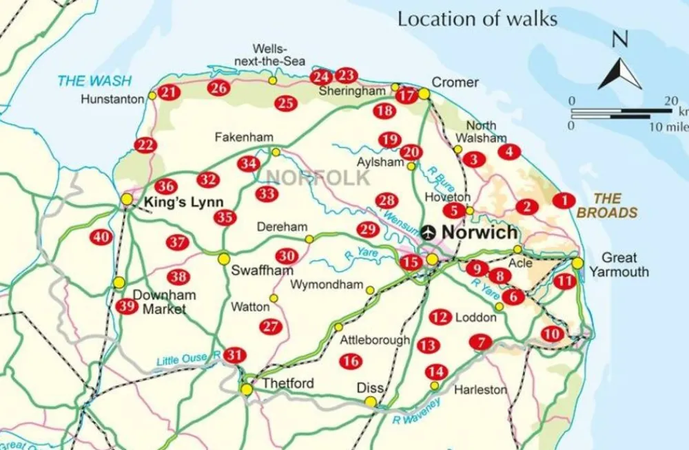 Goede, Engelstalige wandelgids met 40 dagwandelingen in Norfolk: Met beschrijving, bezienswaardigheden onderweg, niveau wandeling, overzichtskaartje per wandeling en niet te vergeten: de lokale pub. Met wandelingen in The Broads National Park.