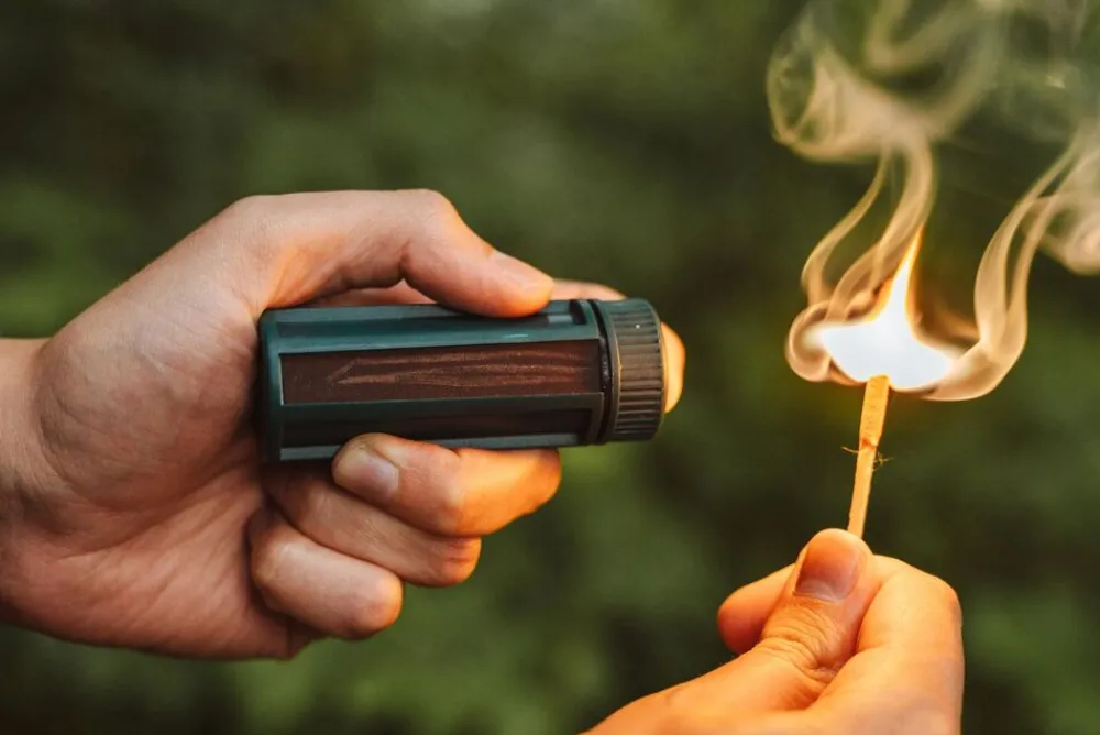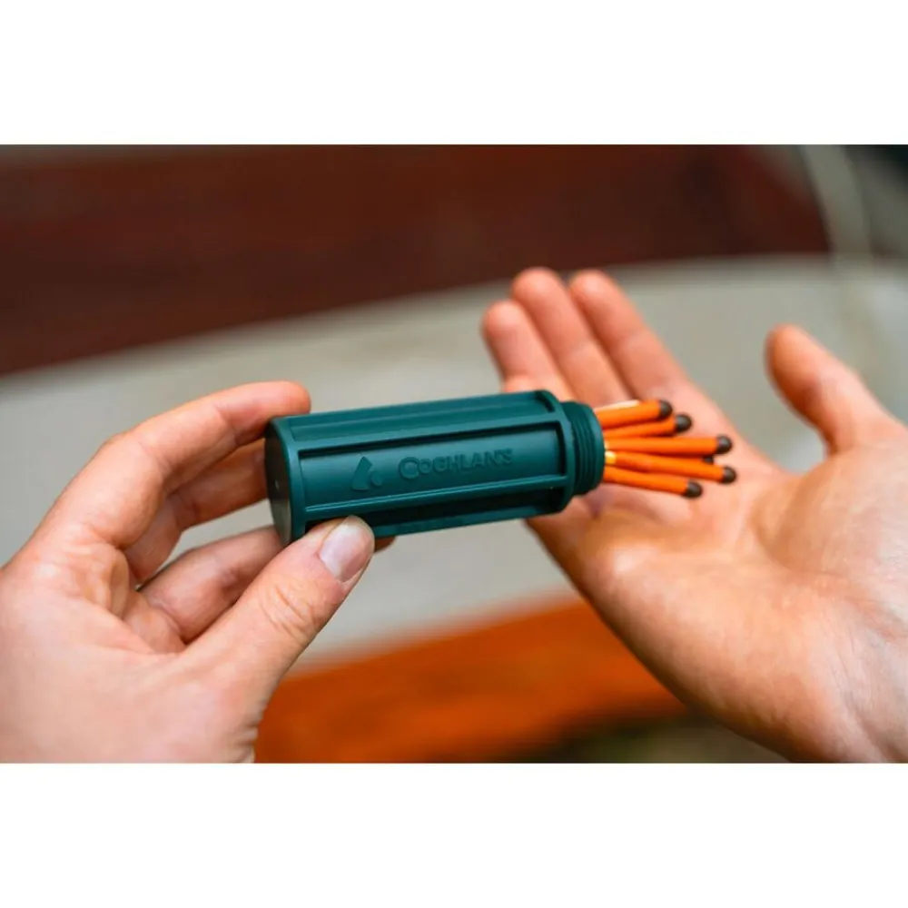 Kunststof, waterdicht kokertje voor circa 25 lucifers. (Lucifers niet inbegrepen)