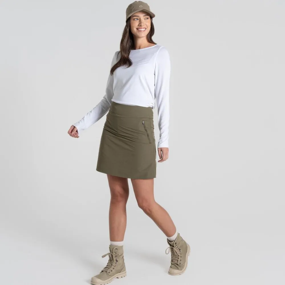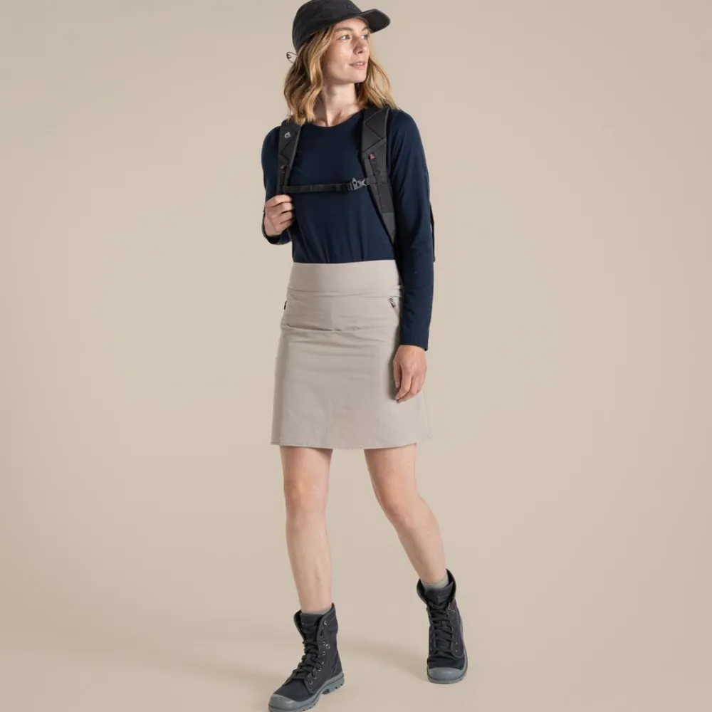 De NosiLife Pro Skort van Craghoppers is een stretchrokje met binnenbroekje, lichtgewicht en behandeld met een insectenwerend middel.