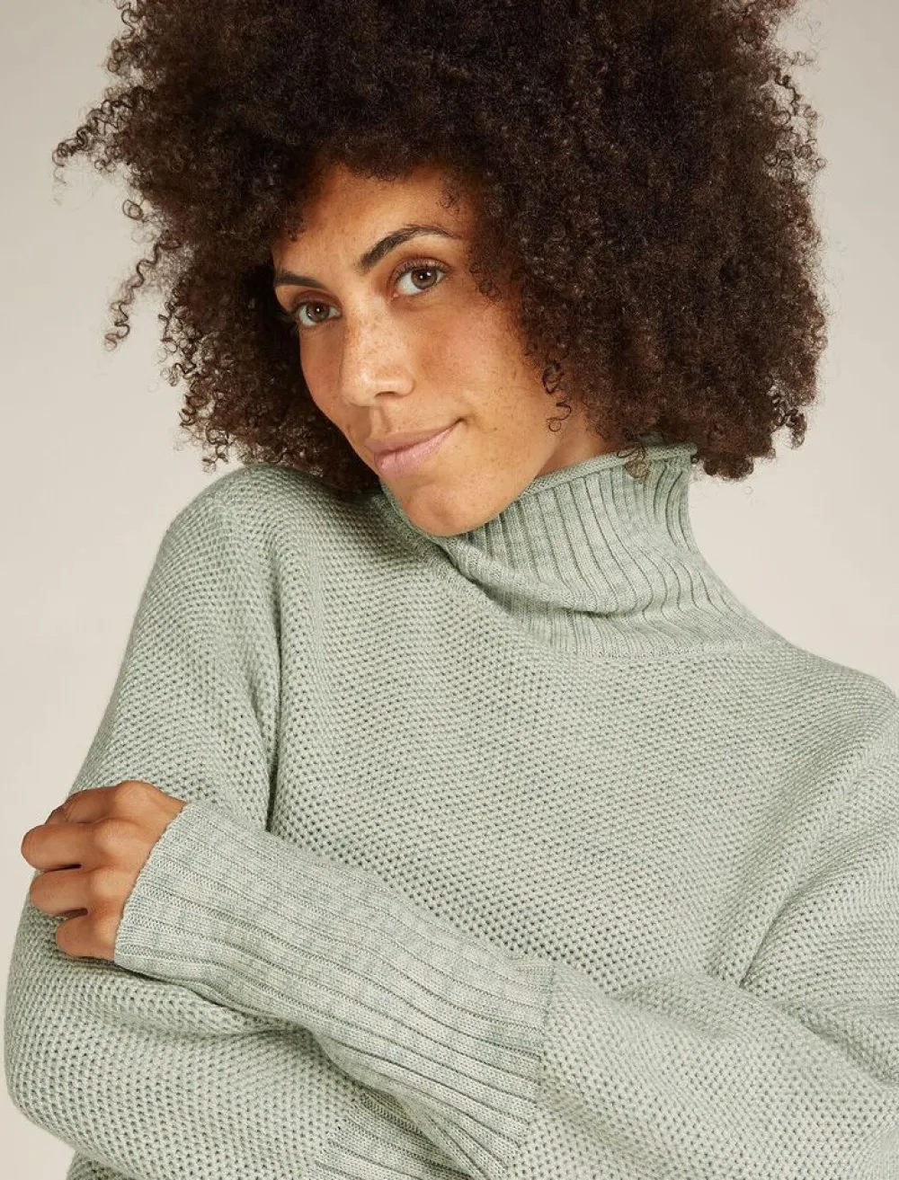 De Seevista Funnel Neck van Icebreaker is een fijne warme, dikke trui van Merinowol met heerlijke col, die je op winterse dagen thuis of tijdens koude trips buiten een superwarm comfort biedt.