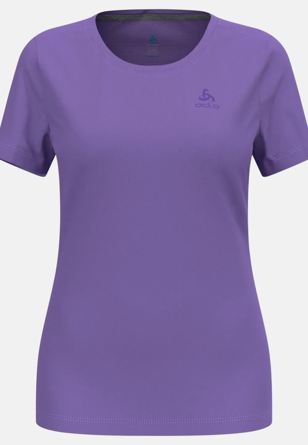 Het Crew Neck S/S F-Dry T-Shirt van Odlo is een sneldrogend shirt voor vrouwen, dat dankzij de twee verschillende materialen het vocht naar buiten trekt. Het shirt voelt zacht en is bijzonder licht.