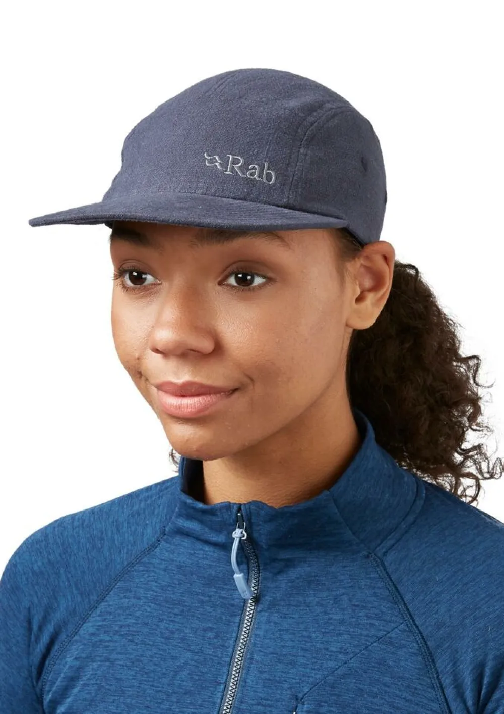 De Obtuse 5 Panel Cap van RAB heeft een platte klep en structuurstof, de pet is comfortabel en geventileerd, met een trucker-achtig ontwerp en verstelbare achterkant.
