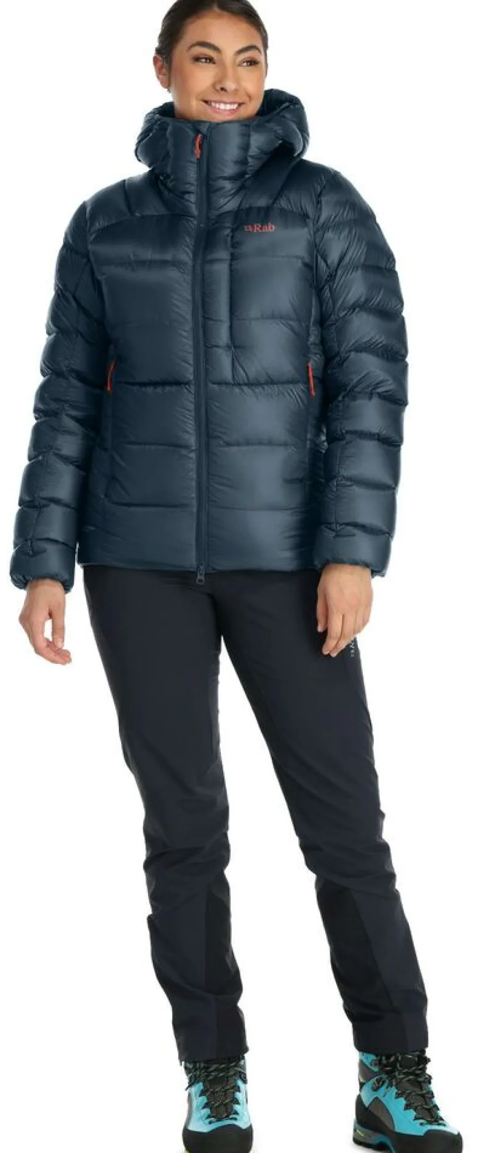 De Mythic Ultra Jacket van RAB, is een warme lichtgewicht donsjas, deze is gemaakt voor gebruik door alpinisten en bergbeklimmers, deze donsjas heeft een capuchon die compatibel is met een helm, een tweewegritssluiting aan de voorkant voor gebruik met een klimgordel en fijne voorgevormde mouwen om makkelijk in te kunnen bewegen met klimmen.