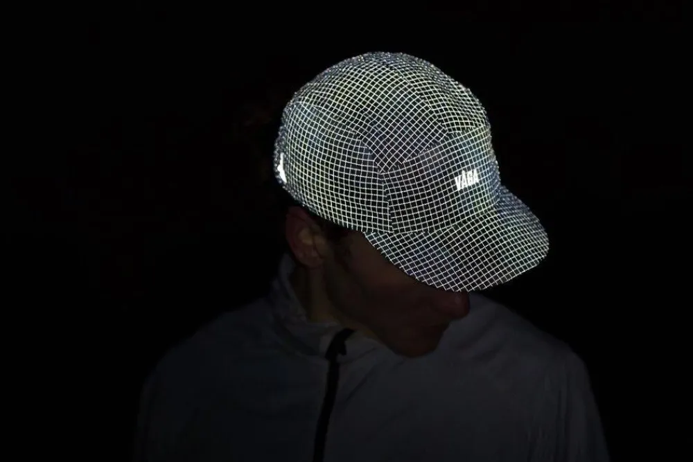 Met de Night Club van Våga kun je ook in het donker op pad! Deze lichtgewicht hardlooppet is dankzij een reflecterende rastertechnologie en reflecterende logo’s uitermate goed zichtbaar in het donker, zodra er licht op schijnt. De stof is waterafstotend, en dat in combinatie met getapete naden maakt de pet goed bestand tegen een regenbui. Het is flexibel en klein op te vouwen.