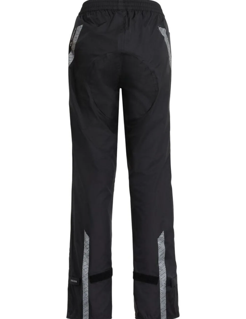 Regenbescherming die opvalt! Deze rondom reflecterende 2,5-laags regenbroek van bluesign® gecertificeerd materiaal beschermt je onder alle weersomstandigheden. De reflectoren verhogen je zichtbaarheid in het donker in het verkeer beduidend, omdat je juist in slechte omstandigheden waardevolle seconden eerder wordt gezien. Dit product is TÜV-gecertificeerd als waarschuwingskleding en zorgt zo voor betere zichtbaarheid in de nacht. Hij is vederlicht en klein in de bijgeleverde opberghoes in te pakken. Het zitvlak is dubbellaags; de voorgevormde knieën en in breedte verstelbare broekspijpen zorgen voor een comfortabele fit. Goed te combineren met het Luminum Jacket. Dit product is met Eco Finish zonder fluorkoolstoffen (PFC) milieuvriendelijk waterafstotend gemaakt. Het VAUDE Green Shape-label staat voor een milieuvriendelijk, functioneel product van duurzame materialen.