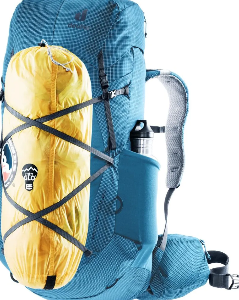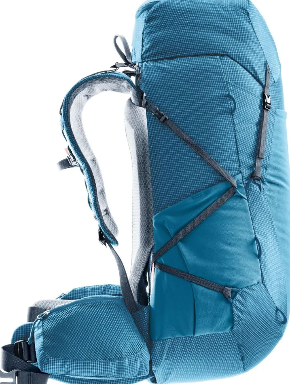 De Aircontact Ultra 40 + 5 van Deuter is perfect voor echte hikers die hun grenzen willen verleggen en behoefte hebben aan een lichtgewichte, betrouwbare rugzak. De basis van deze rugzak bestaat uit het bekende Aircontact rugsysteem. Het zeer ademende Air Spacer Mesh zorgt voor optimale ventilatie en minimaliseert het contact met de rug, terwijl het totale gewicht van de rugzak laag blijft. De eenvoudige Clip & Loop ruglengteverstelling en ergonomisch gevormde heupvinnen zorgen voor een op maat gemaakte pasvorm met een superieur draagcomfort over lange afstanden. Teruggebracht tot de essentie, biedt deze lichtgewicht rugzak de perfecte balans tussen comfort en gewicht, zodat je meer energie aan de trails kunt besteden. En dankzij het slijtvaste ripstop materiaal kan deze rugzak vrijwel alles aan. Het deksel kan worden verwijderd om extra gewicht te besparen, waarna je het hoofdvak met behulp van een trekkoord en drukknoopsluiting kunt afsluiten. Je kunt de modulaire materiaalriemen verwijderen of juist verplaatsen, zodat je de Aircontact Ultra aan jouw eigen wensen aan kunt passen. Met de riemen kun je wandelstokken, tentstokken of zelfs een dekzeil aan je rugzak bevestigen. De Aircontact Ultra 40 + 5 laat duidelijk zien dat buitensporten en milieuvriendelijkheid hand in hand kunnen gaan. Als een bluesign® product, voldoen deze modellen aan de strenge Green Button criteria. Daarnaast is deze rugzak klimaatneutraal en PFAS vrij.