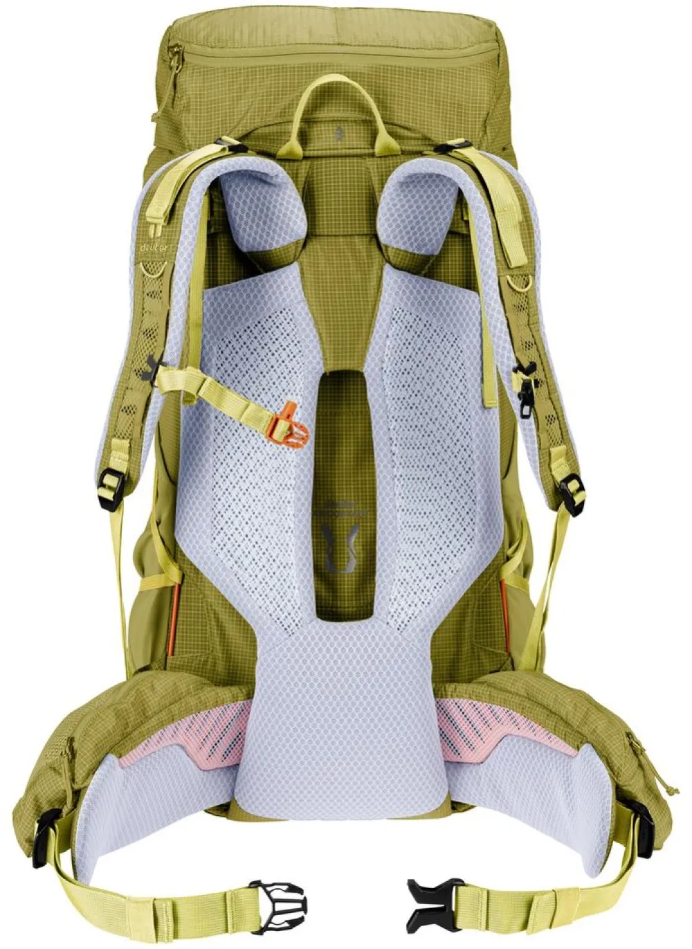 De Aircontact Ultra 35 + 5 SL van Deuter is perfect voor thru-hikers die hun grenzen willen verleggen en behoefte hebben aan een lichtgewichte, betrouwbare rugzak voor hun buitenavontuur. De basis van deze rugzak bestaat uit het bekende Aircontact rugsysteem. Het zeer ademende Air Spacer Mesh zorgt voor optimale ventilatie en minimaliseert het contact met de rug, terwijl het totale gewicht van de rugzak laag blijft. De eenvoudige Clip & Loop ruglengteverstelling en ergonomisch gevormde heupvinnen zorgen voor een op maat gemaakte pasvorm met een superieur draagcomfort over lange afstanden. Teruggebracht tot de essentie, biedt deze lichtgewicht rugzak de perfecte balans tussen comfort en gewicht, zodat je meer energie aan de trails kunt besteden. En dankzij het slijtvaste ripstop materiaal kan deze rugzak vrijwel alles aan. Het deksel kan worden verwijderd om extra gewicht te besparen, waarna je het hoofdvak met behulp van een trekkoord en drukknoopsluiting kunt afsluiten. Je kunt de modulaire materiaalriemen verwijderen of juist verplaatsen, zodat je de Aircontact Ultra aan jouw eigen wensen aan kunt passen. Met de riemen kun je wandelstokken, tentstokken of zelfs een dekzeil aan je rugzak bevestigen. De Aircontact Ultra 35 + 5 SL laat duidelijk zien dat buitensporten en milieuvriendelijkheid hand in hand kunnen gaan. Als een bluesign® product, voldoen deze modellen aan de strenge Green Button criteria. Daarnaast is deze damesrugzak klimaatneutraal, PFAS vrij en volledig aangepast aan de anatomie van het vrouwenlichaam.