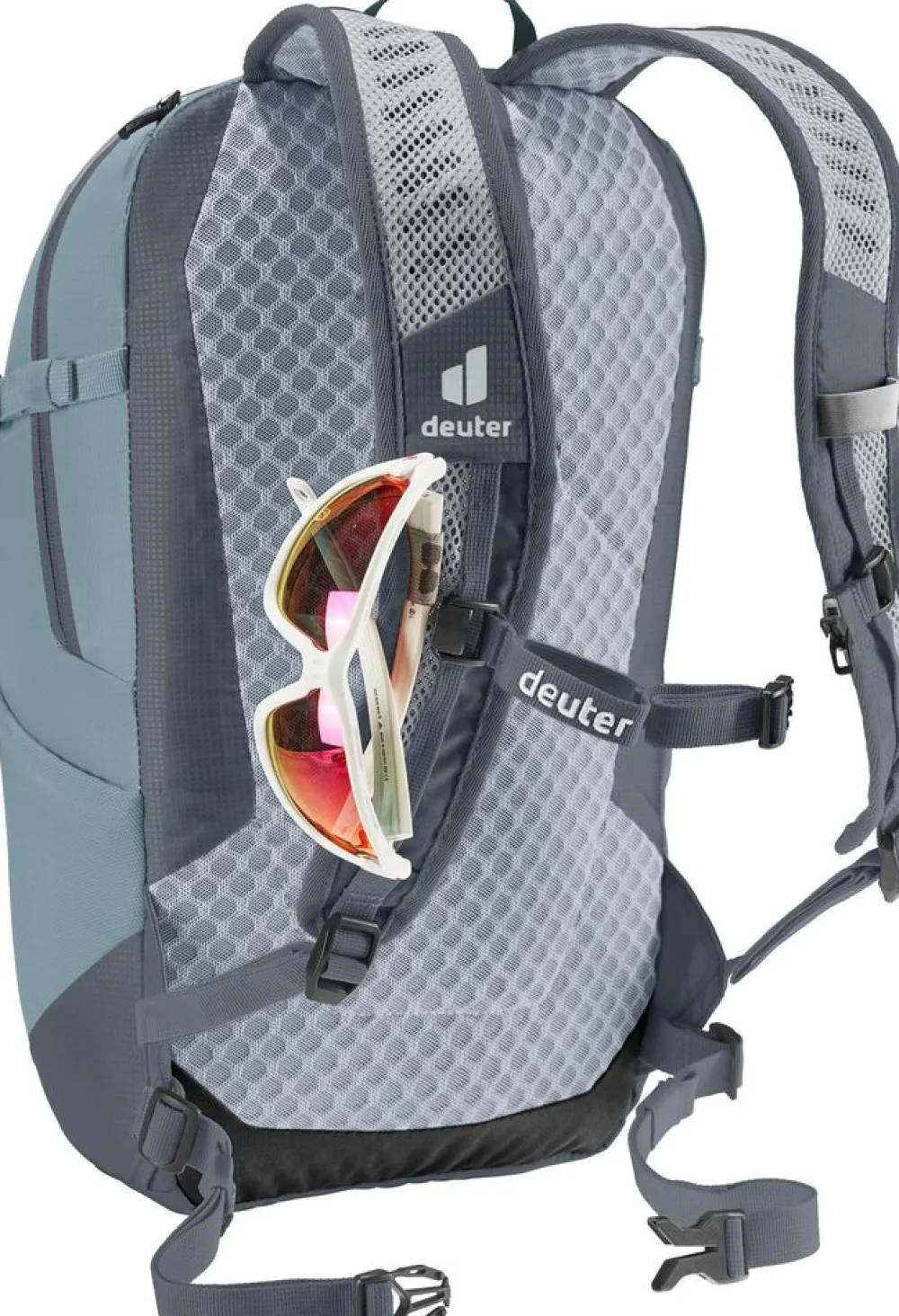 De Speed lite 21 van Deuter is extreem licht, comfortabel en duurzaam, dankzij het beproefde Lite-draagsysteem, ergonomisch gevormde, geperforeerde schouderbanden, afneembare heupriem, traploos verstelbare borstband en 100% gerecycled en bluesign®-gecertificeerd hoofdmateriaal.