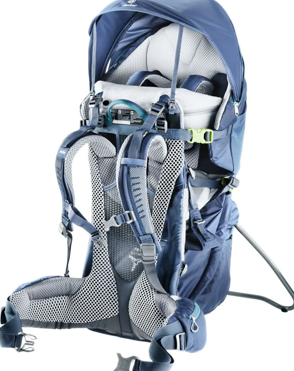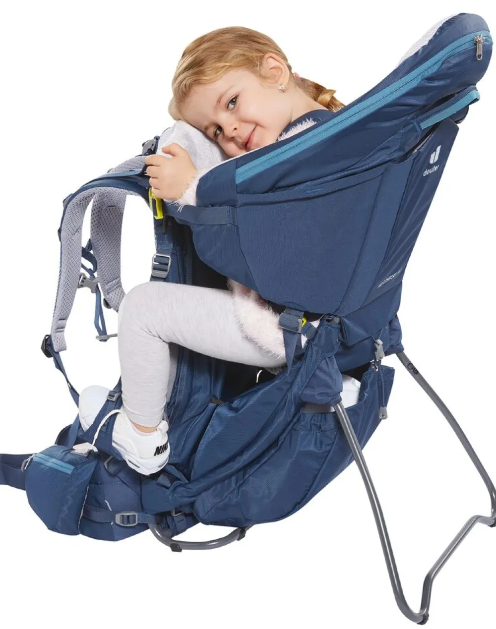 Bergwandelingen voor gezinnen wordt aangenamer met de Kid Comfort Pro van Deuter, welke is voorzien van het prettige Aircomfort Sensic Vario ventilerende draagsysteem. Het verschil tussen de normale Kid Comfort en de Pro is de verlengde hoofdsteun voor het kind, waarin tegelijkertijd een zonnescherm verwerkt is. De schouderbanden zijn verstelbaar zodat de drager door beide partners gedragen kan worden (mits deze niet teveel verschillen qua lengte). Het kind is makkelijk in de drager te zetten door de zijwaartse instap. Daarnaast is het kussen bij de kin makkelijk vervangbaar en wasbaar. Ook is een klein rugzakje bijgevoegd. De kinderdrager is goedgekeurd door het TÜV GS veilingheidslabel.