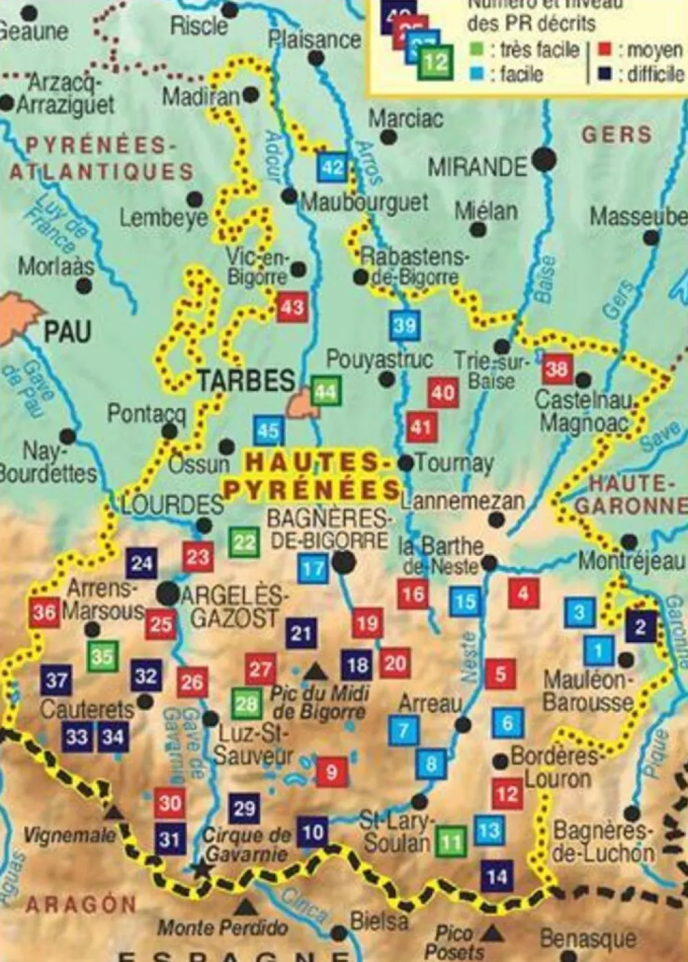 Franstalige wandelgids met 45 wandelingen in de regio Hautes-Pyreneesten rond Tarbes en Gavarnie.