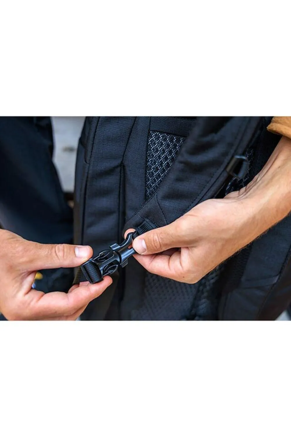 - Opbergbare schouderbanden en heupband voor eenvoudig opbergen tijdens het inchecken