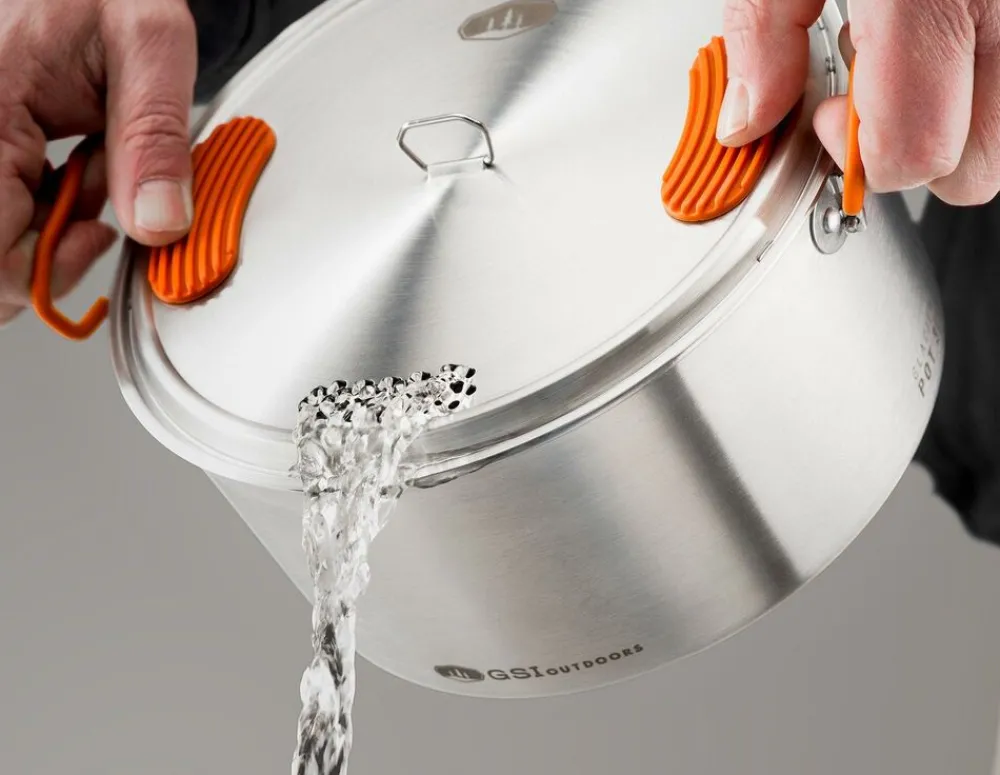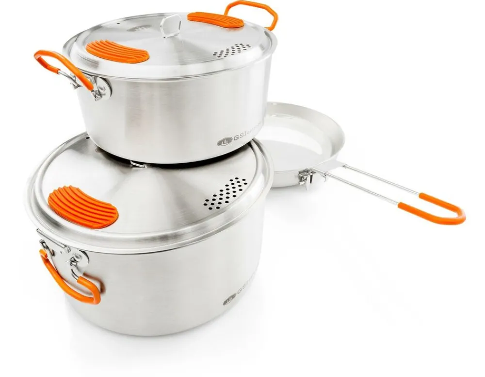 De Glacier base camper Medium van GSI is een super robuuste, ongelooflijk efficiënte roestvrijstalen kookset voor 3+ personen.