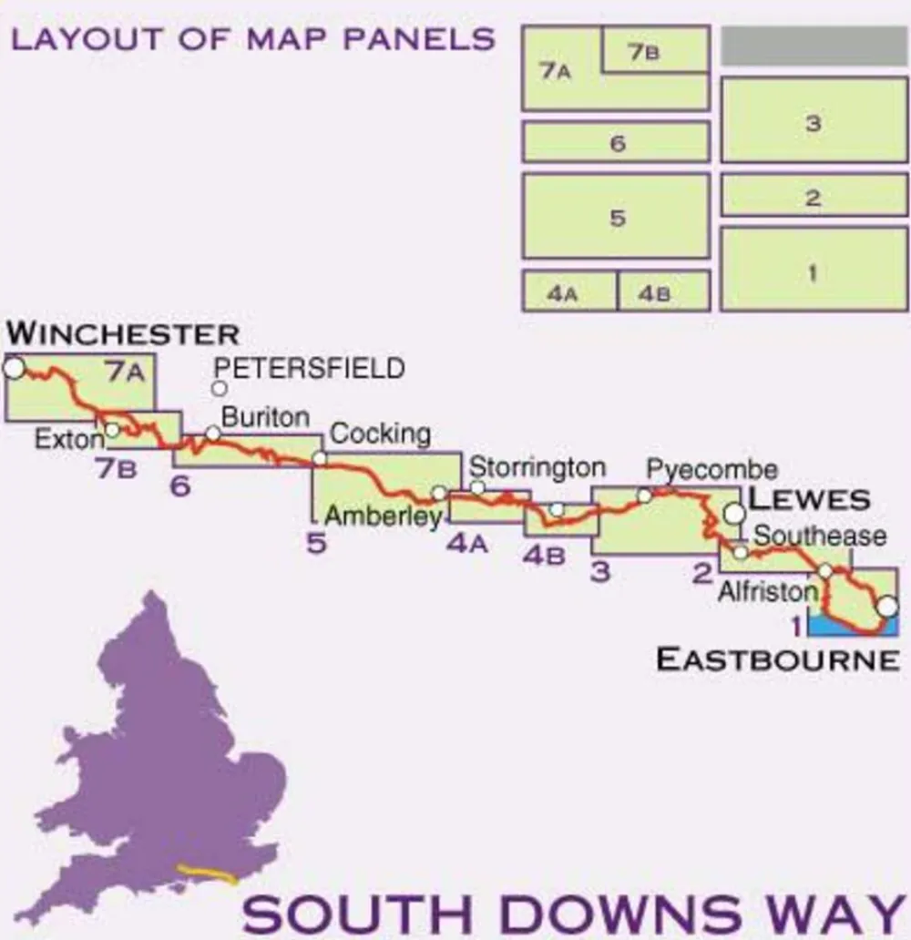 - Shows the entire 162km (101 miles) route between Winchester and Eastbourne on one sheet.Suitable for walkers, cyclists and horse riders with alternative routes clearly shown.