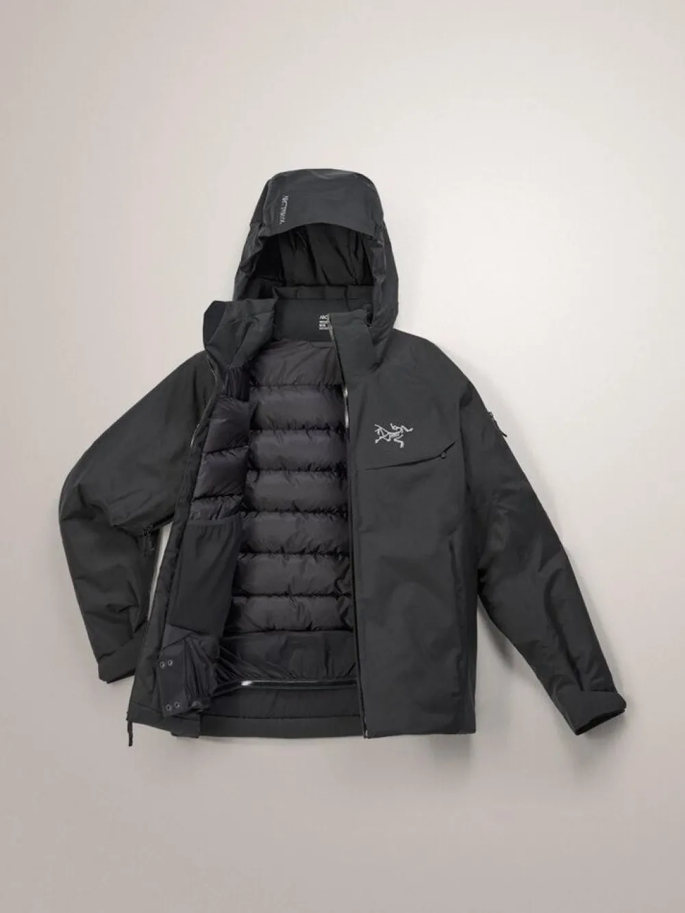 De jas is voorzien van een afneembare sneeuwvanger en heeft met mesh gevoerde PowderGuard ™ onderarm-ritsen en waterafstotende rits aan de voorzijde. De capuchon is afneembaar en ook gevoerd met Coreloft™ synthetische isolatie, de capuchon past over een standaard skihelm.