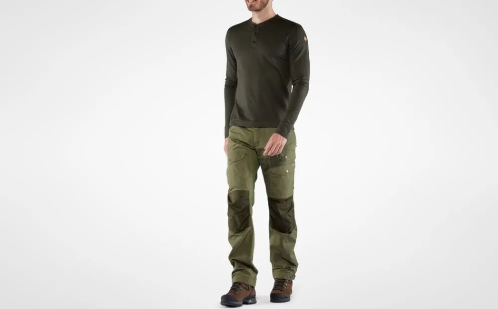 De Vidda Pro Ventilated Trousers M reg van Fjällräven is een traditionele robuuste wandelbroek, gemaakt van wind- en waterbestendig G-1000 Eco. Het model is gebaseerd op de Vidda Pro, maar heeft verbeterde mogelijkheden voor ventilatie en een iets smallere pasvorm die nog steeds een grote bewegingsvrijheid geeft. De verstelbare bandjes aan de uiteinden van de pijpen kunnen worden verwijderd en er zijn talloze zakken voor spullen, zoals een zak voor een mes op het rechterbeen en een lus voor een bijl aan de zijkant van de taille.