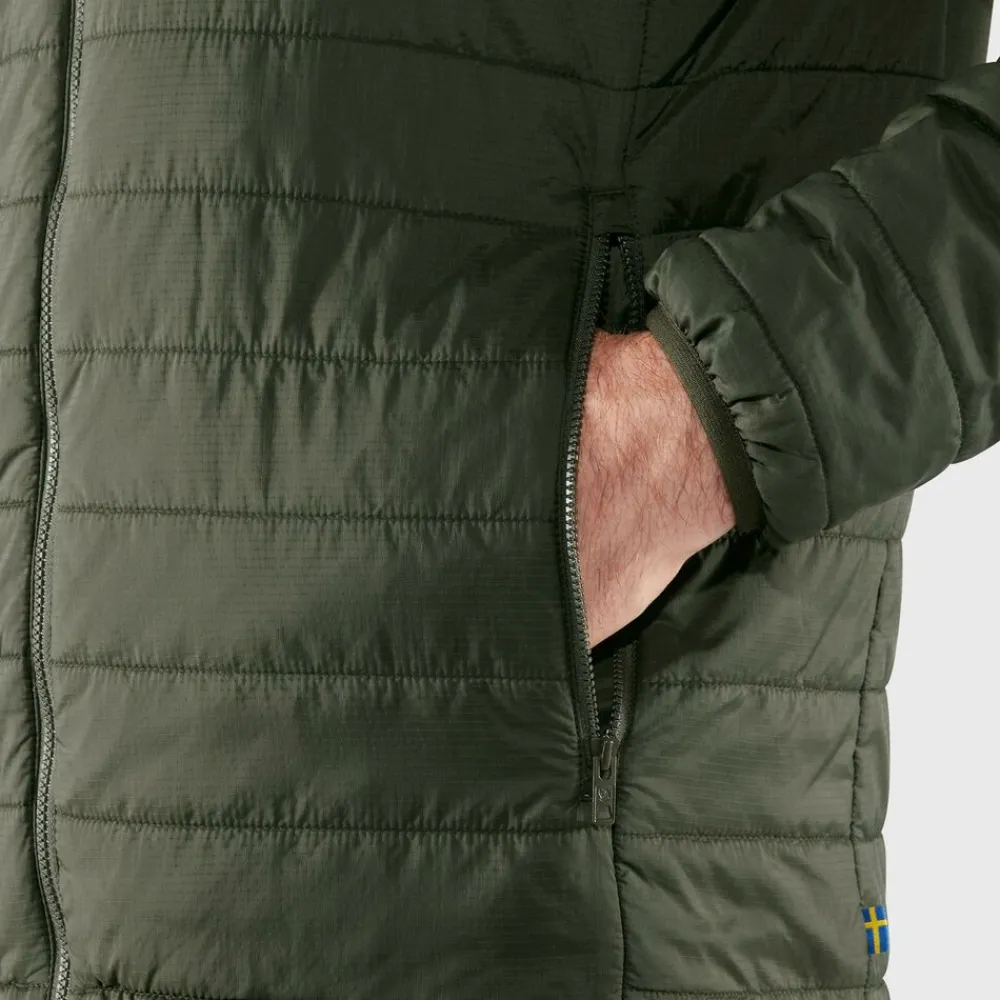 Het Expedition X-Lätt Jacket M van Fjällräven is een lichtgewicht isolatiejasje, gemaakt van 100% gerecycled nylon. Ideaal voor op koele, actieve dagen in de bergen wanneer je net een laagje extra kan gebruiken. Comfortabel te dragen onder een hardshell of op zichzelf.