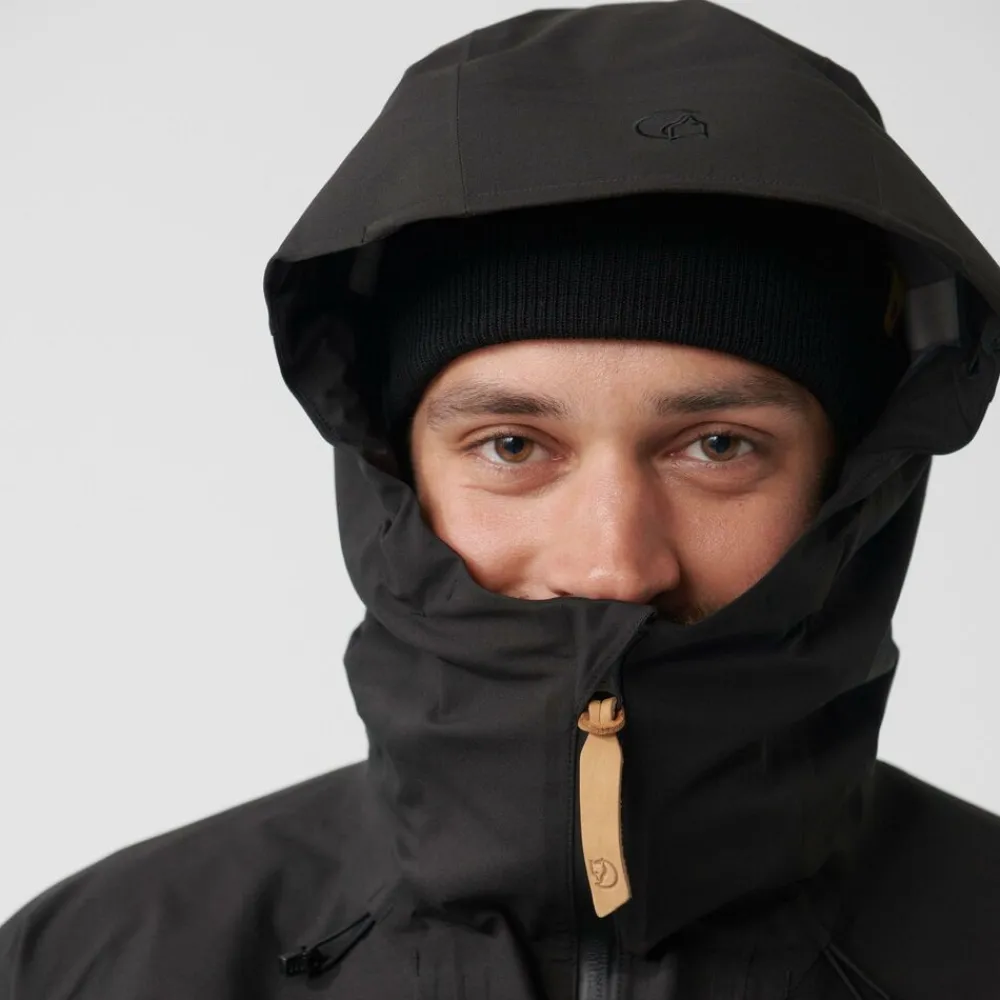 De snit is zorgvuldig uitgewerkt voor een perfecte pasvorm en bewegingsvrijheid. De mooi aansluitende capuchon biedt ruimte voor een helm. Je kunt de capuchon zo verstellen dat hij goede bescherming biedt zonder je zicht of de bewegingen van je hoofd te beperken. Het jack heeft een waterafstotende tweewegrits met een beschermoverslag aan de binnenkant, die makkelijk aan beide kanten opengaat voor ventilatie. De ruime borstzakken met verborgen plooien zijn prima toegankelijk, óók als je een klimgordel of een rugzak met heupgordel draagt. De borstzakken hebben binnenzakken van elastische mesh om een mobiele telefoon en andere kleine spullen op hun plaats te houden.