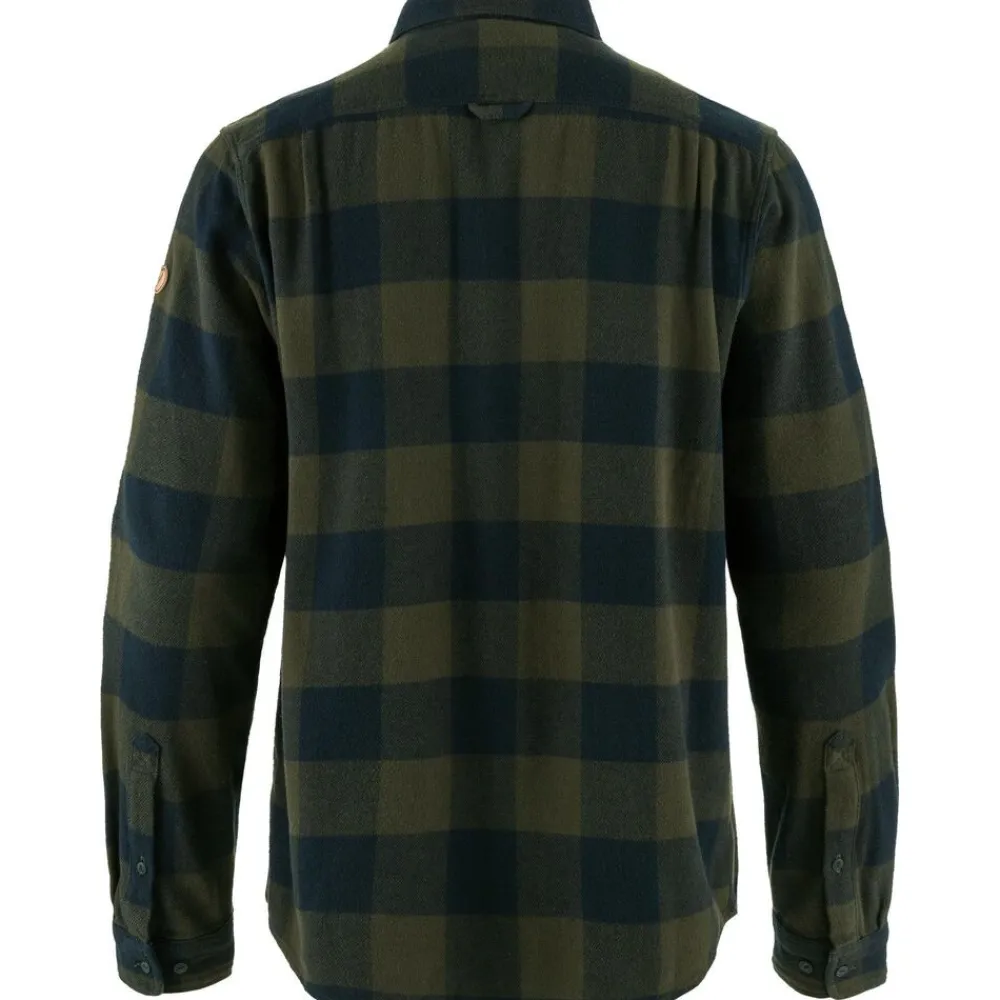 Het Övik Heavy Flannel Shirt M van Fjällräven is een lange mouwen blouse gemaakt van aan beide zijden geborsteld biologisch katoenen flanel. Het overhemd heeft twee borstzakken met knoopjes en sluit ook met (gerecycled polyester) knopen.