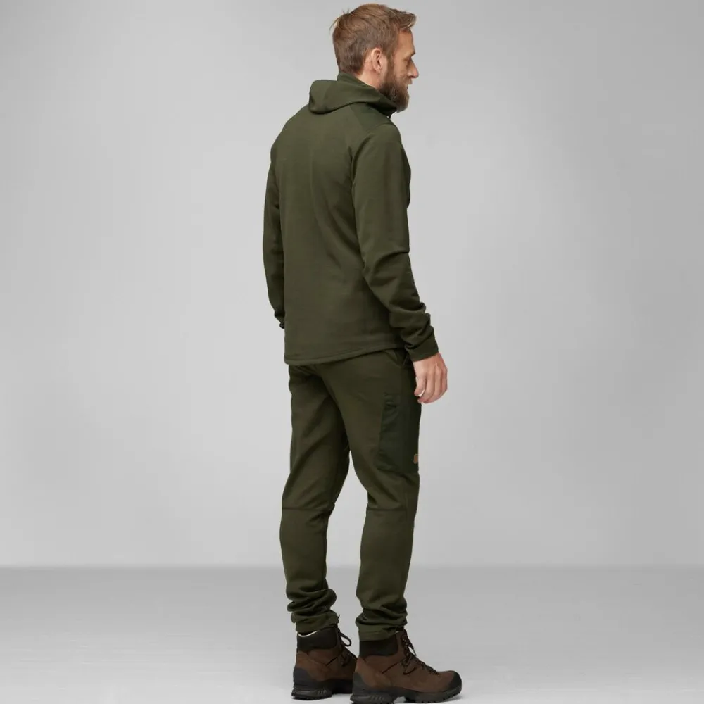De Keb Fleece Hoodie M van Fjällräven is een isolerende en vochtafvoerende fleecehoodie, perfect als tussenlaag, het hele jaar door. Gemaakt van een blend van gerecycled polyester en een traceerbare wol en verstevigd met G-1000® op de schouders, voor extra slijtvastheid.