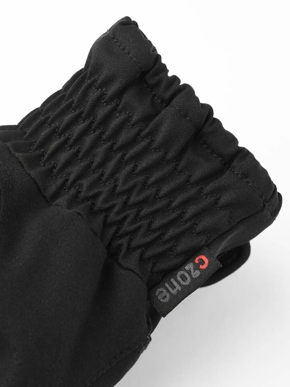 De All Weather CZone van Hestra is een comfortabele, wind en waterdichte handschoen voor de koudere tijden van het jaar. Deze soepele, met fleece gevoerde handschoen maakt het makkelijker om warmte en gevoel in handen en vingers te behouden. De bovenkant is gemaakt van slijtvast softshell polyamide materiaal, terwijl de vingers van stretch polyester zijn. Een CZone membraan houdt water tegen van buitenaf en laat vocht dat zich in de handschoen vormt ontsnappen. De breedte rond de pols is verstelbaar met klittenband en de meegeleverde polsband zorgt ervoor dat je de handschoen niet laat vallen als je hem uittrekt om bijvoorbeeld een telefoon te gebruiken.