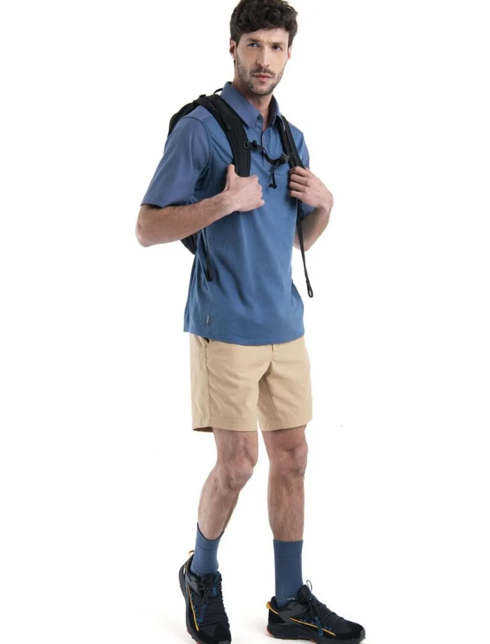 De M Hike SS Top van Icebreaker is een lichtgewicht en ademend poloshirt met korte mouwen, grotendeels gemaakt van merinowol. De kraag met knooplijst, schouderstukken en de bovenkant van de mouwen zijn gemaakt van een mix van merinowol en katoen.