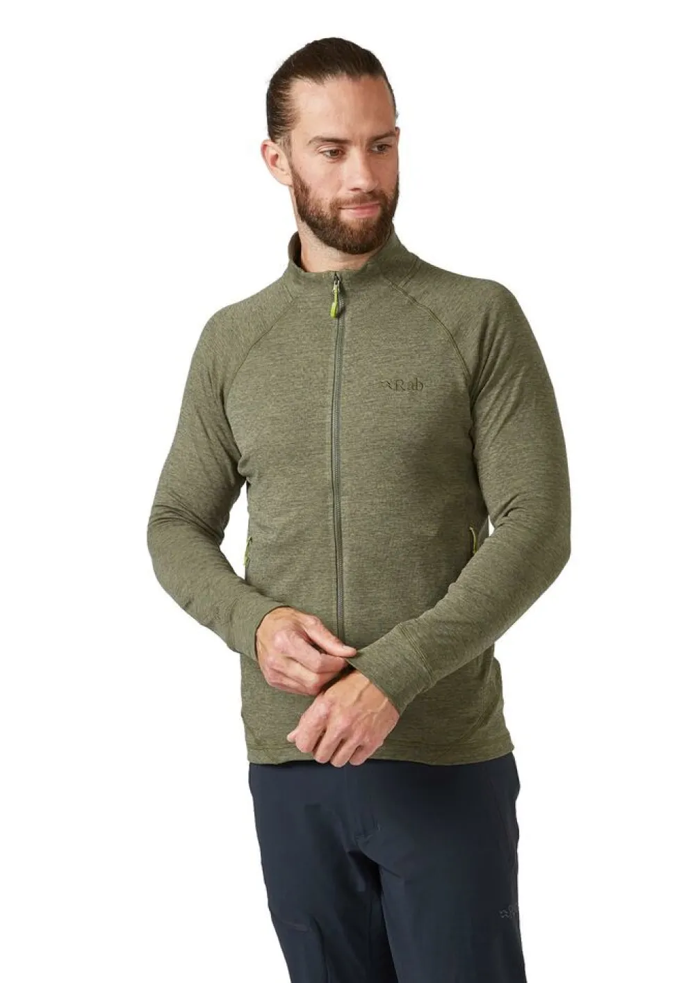 De Nexus Jacket van Rab is een comfortabele tussenlaag, gemaakt van Thermic™ G-stretchfleece voor bewegingsvrijheid tijdens het wandelen of klimmen.