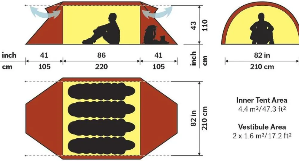 De ventilatie van de tent is uitstekend in alle weersomstandigheden. Het waterafstotende materiaal van de binnentent heeft een hoog ademend vermogen en de deuren zijn voorzien van gaas. De ventilatie gaten in de voortent zitten hoog genoeg om te blijven ventileren wanneer de tent in de sneeuw staat. Bij deze tunneltent wordt eerst de buitentent opgezet en daarna wordt de binnentent erin gehangen. Hierdoor blijft bij slecht weer de binnentent droog. Men kan er ook voor kiezen om de binnentent erin te laten hangen, zodat het afbreken en opzetten nog sneller gaat.