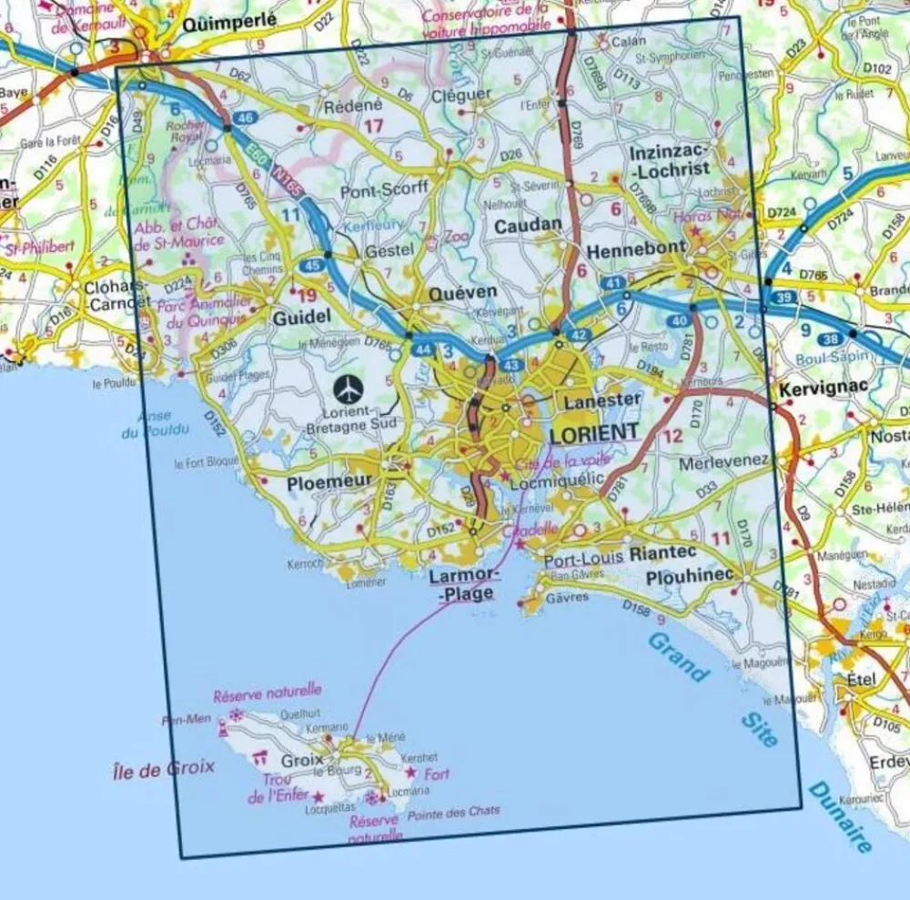 Communes couvertes : Larmor-Plage, Port-Louis, Lorient, Hennebont, Calan, Quéven, Groix, Riantec, Pont-Scorff, Gestel, Locmiquélic, Ploemeur, Gâvres, Caudan, Lanester, Cléguer, Kervignac, Guidel, Merlevenez, Rédené