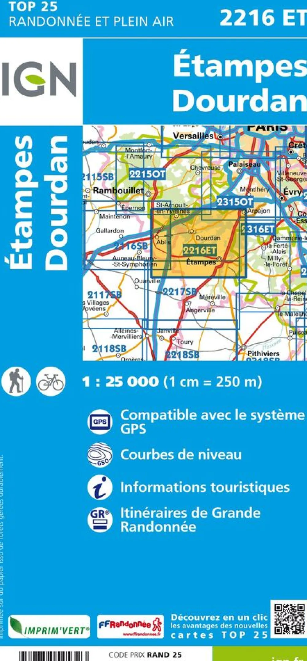 L’indispensable carte de randonnée IGN 2216ET. D’une très grande précision elle contient tous les détails existants sur le terrain : voies de communication jusqu’au moindre sentier, constructions jusqu’au hangar, bois, arbre isolé, rivière, source… Sans oublier la représentation du relief par des courbes de niveau. Les sentiers balisés et les informations touristiques sont également représentées.