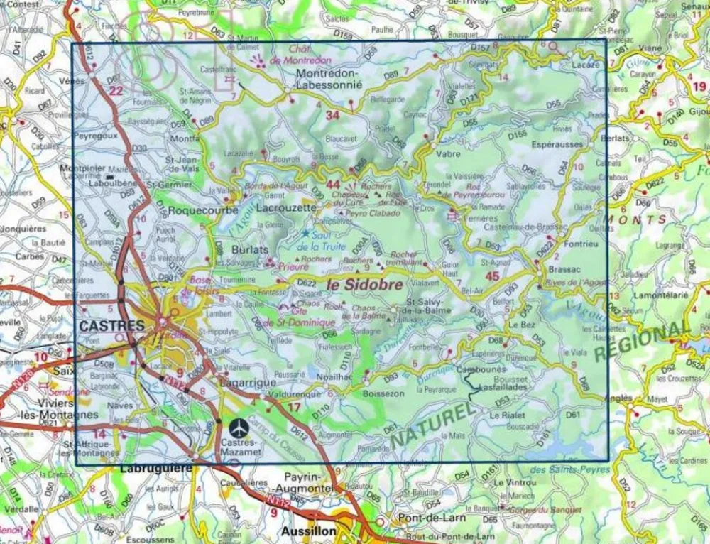 Gemeentes: Noailhac, Saint-Salvy-de-la-Balme, Navès, Laboulbène, Saint-Germier, Burlats, Payrin-Augmontel, Roquecourbe, Lagarrigue, Saint-Jean-de-Vals, Vénès, Montpinier, Peyregoux, Montfa, Le Rialet, Espérausses, Cambounès, Vabre, Le Bez, Caucalières, Castres, Le Sidobre.