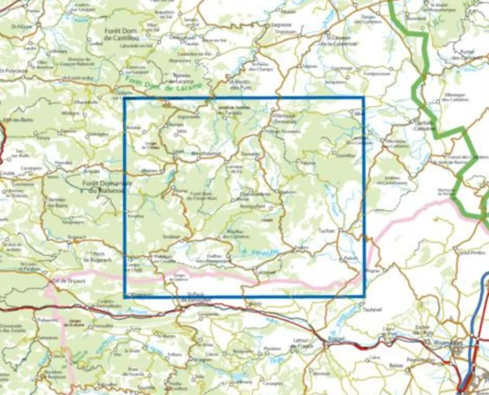 De rest van Frankrijk wordt in kaart gebracht met de “Série Bleu” (eindigend op O = ouest of E = est) welke geen speciale extra overdruk heeft om de wandelroutes aan te duiden. Op deze kaarten vind je dan ook geen toeristische informatie als campings en hutten; het zijn puur topografische kaarten, maar zoals gezegd bijzonder gedetailleerd. Elke “Série Bleu” kaart bedekt een gebied van ongeveer 20 x 14 km