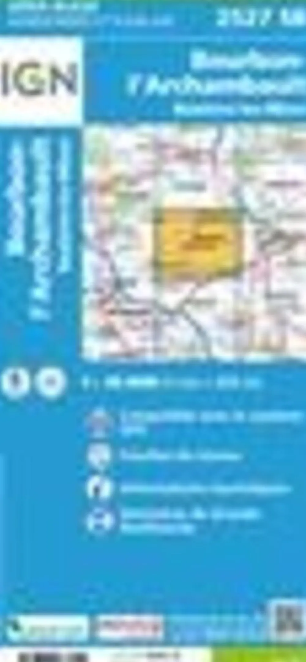 Deze gedetailleerde en informatieve topografische kaart (stafkaart, schaal 1:25.000) van Frankrijk bevat alle topografische elementen van het landschap en geeft daarmee een nauwkeurig beeld van het terrein. Daarnaast heeft IGN toeristische informatie op de meeste kaart verwerkt, zoals de aanduiding voor campings, gites d etape, restaurants en ingetekende doorgaande wandelpaden (de Grandes Randonnees, GR). Deze kaart is ideaal voor wandelaars of fietsers, maar ook voor de scouting of sportverenigingen die activiteiten in Frankrijk gaan uitvoeren. De kaarten zijn voorzien van een GPS aanduiding en een duidelijke legenda.