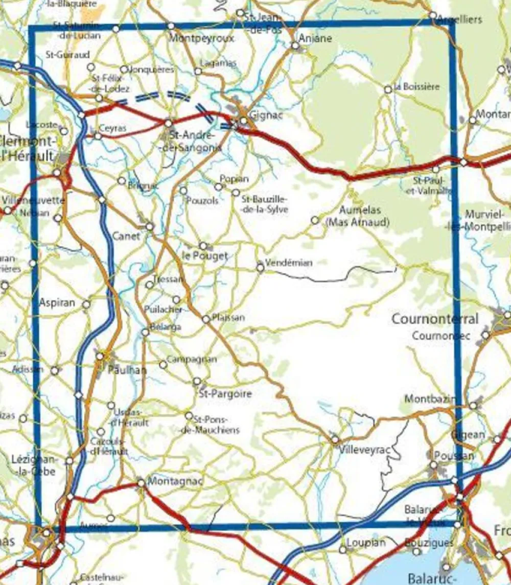 De rest van Frankrijk wordt in kaart gebracht met de “Série Bleu” (eindigend op O = ouest of E = est) welke geen speciale extra overdruk heeft om de wandelroutes aan te duiden. Op deze kaarten vind je dan ook geen toeristische informatie als campings en hutten; het zijn puur topografische kaarten, maar zoals gezegd bijzonder gedetailleerd. Elke “Série Bleu” kaart bedekt een gebied van ongeveer 20 x 14 km