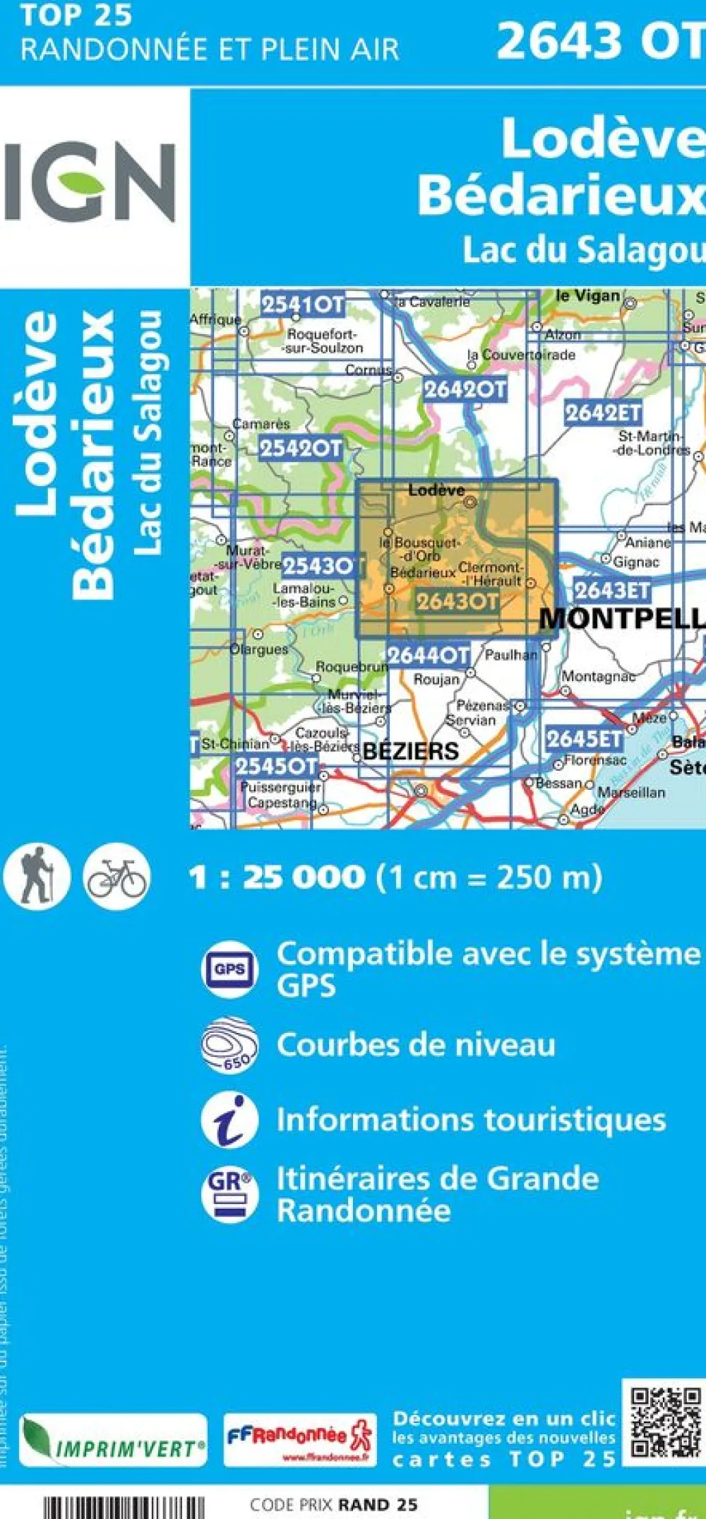 L’indispensable carte de randonnée IGN 2643OT. D’une très grande précision elle contient tous les détails existants sur le terrain : voies de communication jusqu’au moindre sentier, constructions jusqu’au hangar, bois, arbre isolé, rivière, source… Sans oublier la représentation du relief par des courbes de niveau. Les sentiers balisés et les informations touristiques sont également représentées.