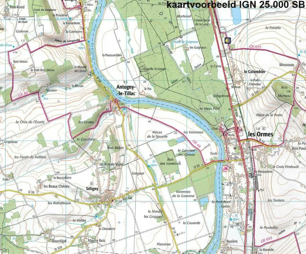 Alle topografische details zijn er op te vinden; van hoogtelijnen tot aan bruggetjes en allerlei wandelpaden. Daarnaast hebben de makers een flinke dosis toeristische informatie op de kaart verwerkt: campings, gites d étape en ingetekende doorgaande wandelpaden, de grandes randonnées. Het kleurgebruik is geweldig met schaduwzijdes, bos, weiland, etc goed te onderscheiden. De kaart is uitgevoerd met raster van graden, dus deze is GPS – toepasbaar!